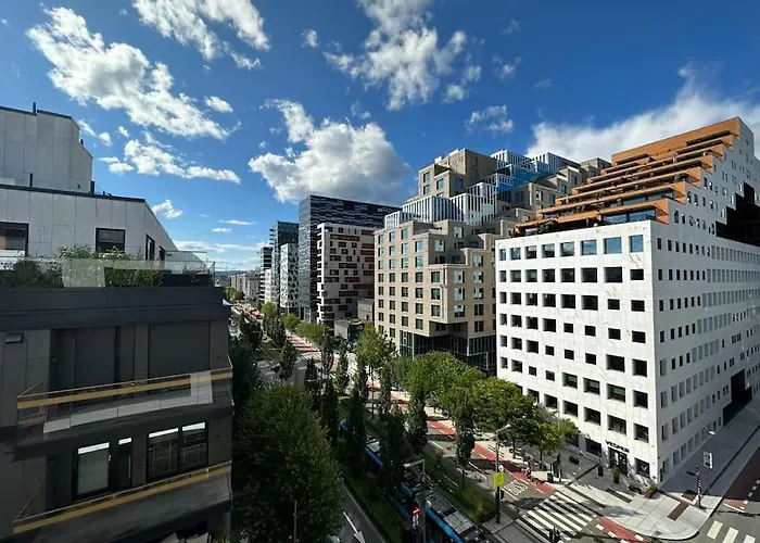 Ligger en 10-minutters spasertur fra undergrunnsstasjonen Jernbanetorget, tilbyr den 1-roms sentrale luksusleiligheten Barcode Oslo Wi-Fi for forretnings- eller fritidsbehov. Bare 5 minutters gange fra busstoppet Bjorvika, gir leiligheten enkel tilgang til Nationaltheatret, som ligger bare 1,8 km unna.
